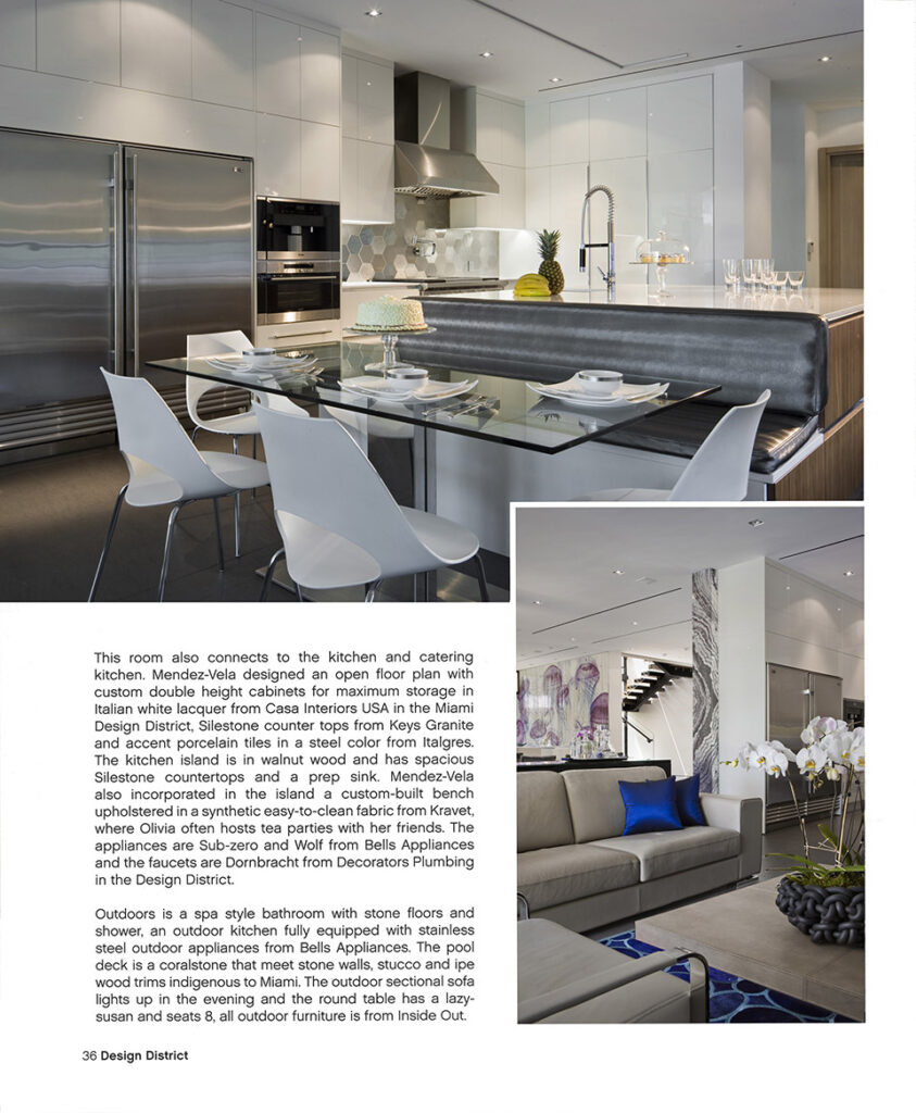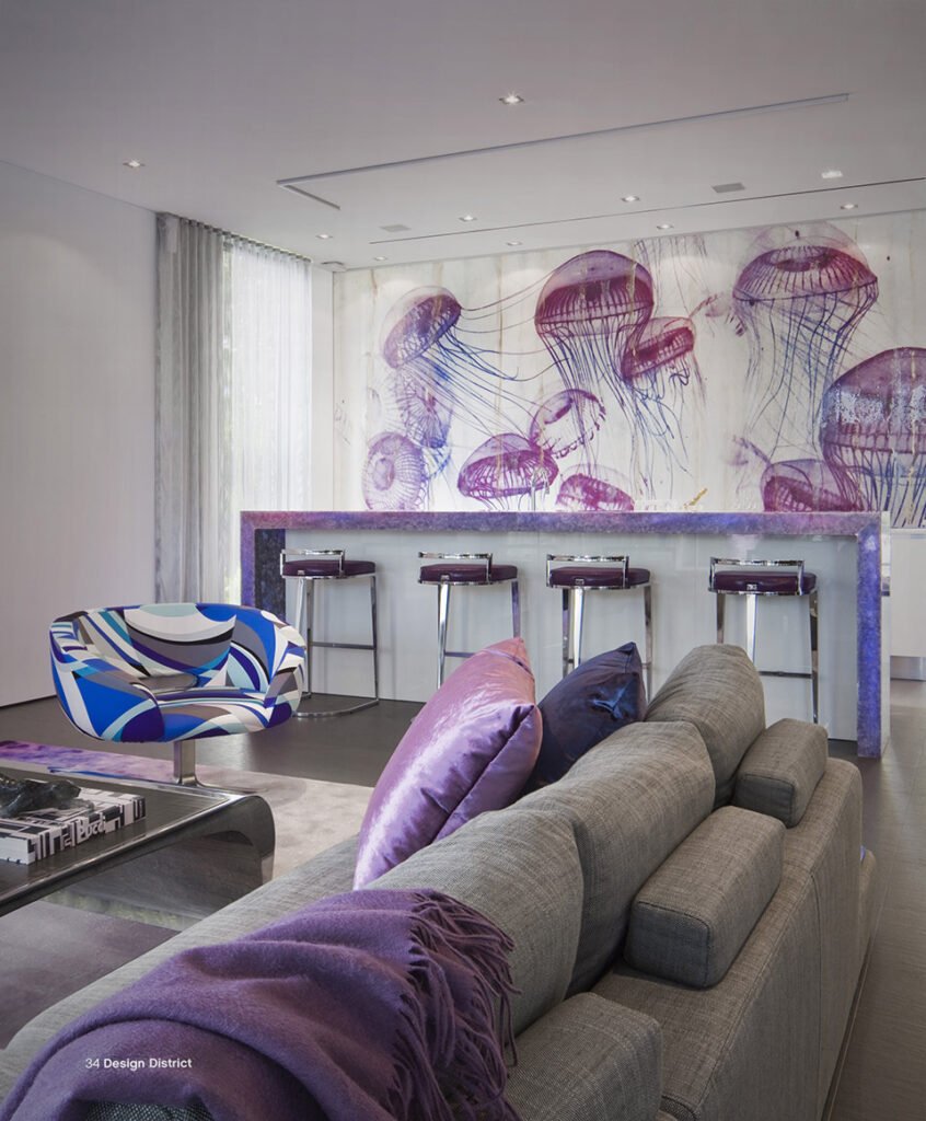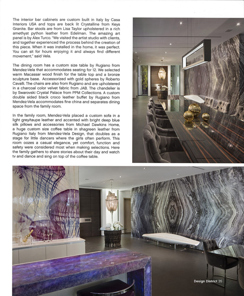 Inspired by the spectacular water views that Fisher Island offers and wanting to create a bright and relaxed Miami environment for their client, the Mendez Vela design team transformed a spacious condominium into a luxurious retirement retreat for a couple originally from Long Island looking to retire in Miami.    “ it is our goal for these spaces to reflect both the personality of our clients, and the nature of the location where the project is to take place.” Mendez Vela said.  Mindful of their client’s focus on family, it was just as important for their new home to evoke the plentiful sunlight, vibrant colors, and laid-back lifestyle that define South Florida, in particular the beautiful beaches of Miami.